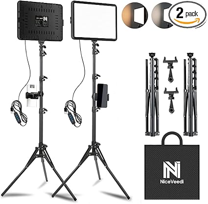 2-Pack LED Video Light Kit, NiceVeedi Studio Light, 2800-6500K Dimmable Photography Lighting Kit with Tripod Stand&Phone Holder, 73″ Stream Light for Video Recording, Game Streaming, YouTube