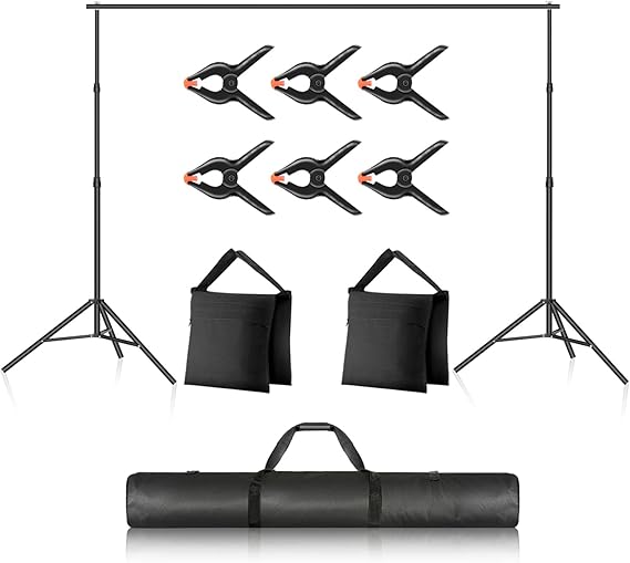 - Stable Backdrop Stand: The aluminum alloy backdrop stand is durable and stable with load capacity up to 8.8lb/4kg. Two empty nylon sandbags are included for added stability